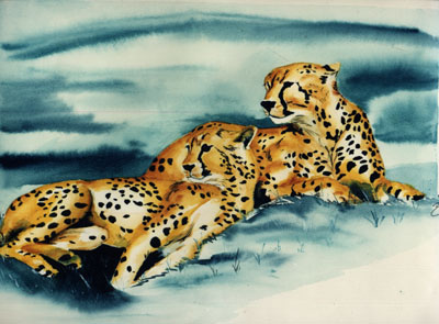 "Two Leapards", Watercolor Sold to private collector