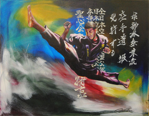 "Kiyoshi Hunter ", Acrylic on Canvas, "24 x 36" In Private Collection at Tiger Martial Arts Academy |