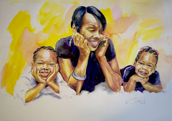 "Congo Lady", Ink Wash on Watercolor Board, 16*20 Sold, Singletary African Art Gallery |